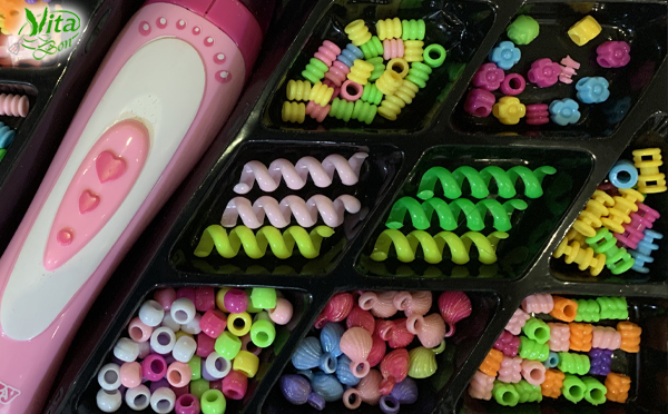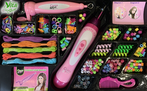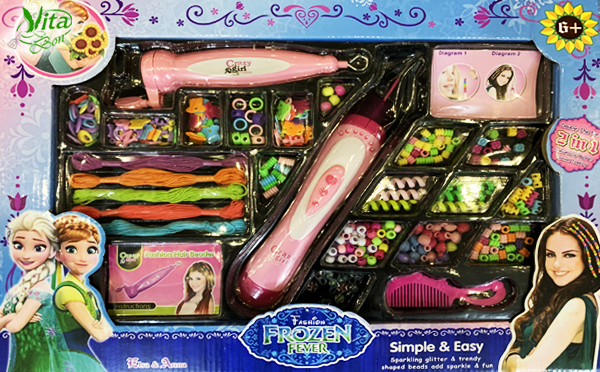 این اسباب بازی آموزشی طرح ها و شکل های بسیار زیبایی دارد که به کمک یک وسیله بسیار کاربردی و ساده کودکان می توانند مو های خود را تزیین کنند . استفاده از این وسیله کاملا بیخطر و ساده می باشد لازم به ذکر است هیچگونه مواد شیمیایی و مایعی در این محصول استفاده نشده است و صرفا همانند یک نخ سوزن ساده می باشد. همچنین با این وسیله میتوانند انواع دستبند و گردنبند را تهییه کنند .