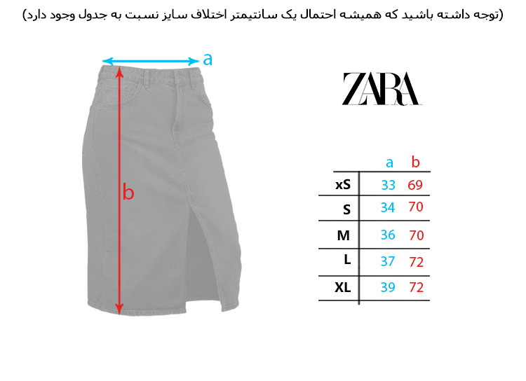 دامن جین زنانه در طرح ZARA هست که فقط کافیه که به جدول سایزبندی مراجعه کنین و سایز دلخواهتون رو انتخاب کنین .