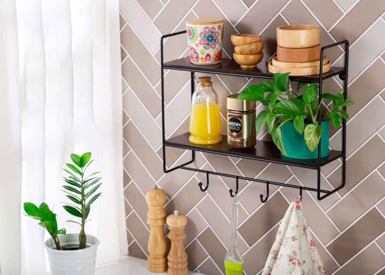 امروز ویتابن برای شما عزیزان شلف آویز دو طبقه رو معرفی میکنه،این محصول از جنس فلز همراه با طبقات چوبی تولید شده است. طراحی این استند فلزی آشپزخانه به صورت دیواری همراه با ۴ آویز است،این محصول را به گزینهای مناسب جهت نگهداری مواد غذایی، بطریهای نوشیدنی، بطری حبوبات و … تبدیل نموده است؛ بنابراین شما میتوانید علاوه بر منزل، در محیط های مختلف نظیر رستورانها، هتل و … نیز از این ارگانایزر فلزی استفاده کنید.