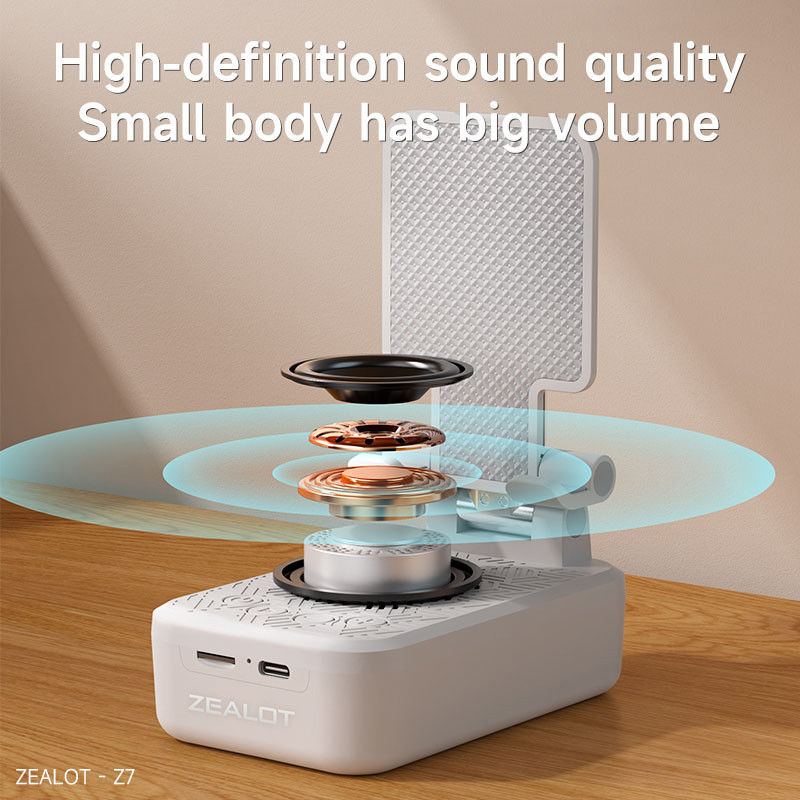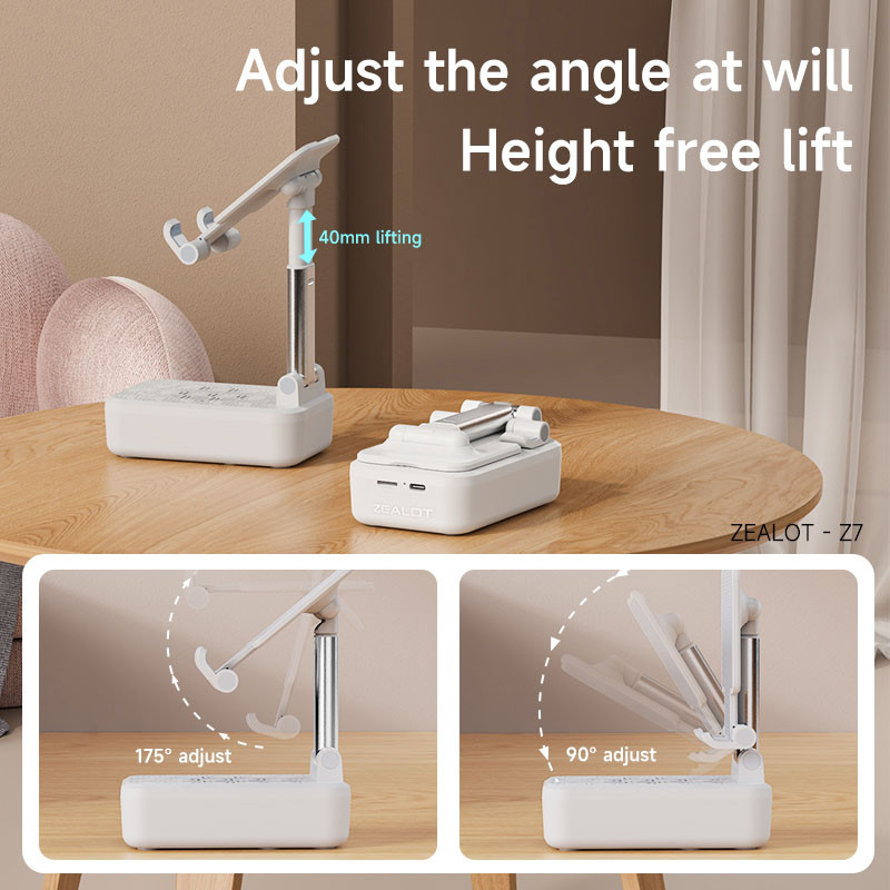 اسپیکر بلوتوثی زیلوت مدل Z7 با طراحی کاربردی برای کسانی که می خواهند همزمان از هولدر و اسپیکر در یک پکیج استفاده کنند است.این محصول قابلیت هولدر برای نگهداری موبایل و تبلت تا 12.9 اینچ را دارد هولدری ارگونومیک با انعطاف پذیری بالا در تنظیم زاویه مناسب قسمت نگهدارنده و تنظیم ارتفاع مناسب. باطری 1200 میلی آمپری برای این کالا در نظر گرفته شده که از طریق پورت تایپ سی شارژ می شود.بلوتوث ورژن 5.2 به کار رفته در این هولدر باعث شده تا صدا بدون هیچ گونه تاخیر به اسپیکر منتقل شود.همچنین این محصول از شیار کارت حافظه SD Card پشتیبانی می کند.